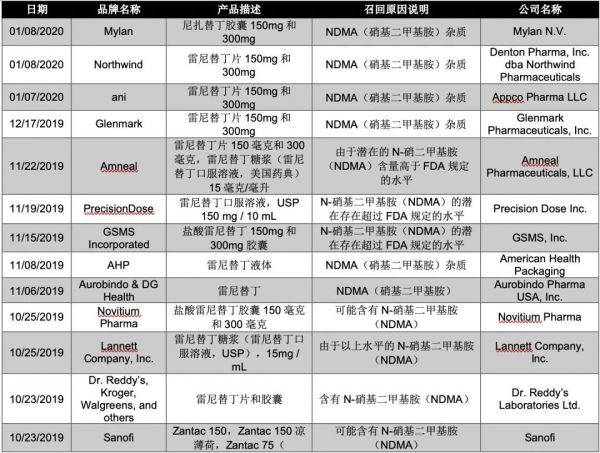 最新!2家药企召回雷尼替丁。