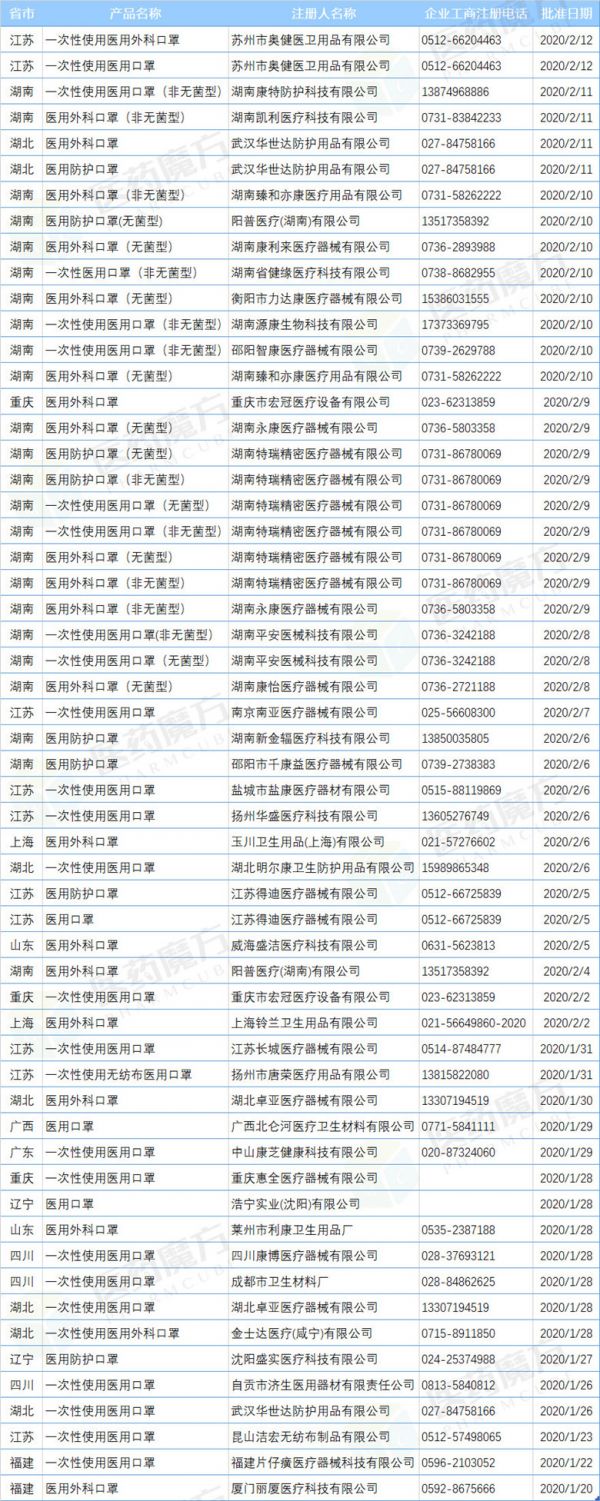 从生产厂家的地域分布上看,湖南、江苏、湖北是新增防护物资的生产供应重点省。为了方便物资紧缺的医院和工作人员联系相关厂家,在此将物资及对应厂家的详细信息如下: