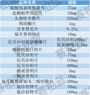 由于公告定义的是“品种”,规格预计都要通过一致性评价,例如硫酸氢氯吡格雷片300mg,利培酮片的2mg、3mg和4mg等非常用的规格。