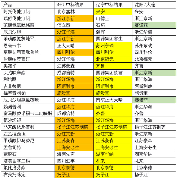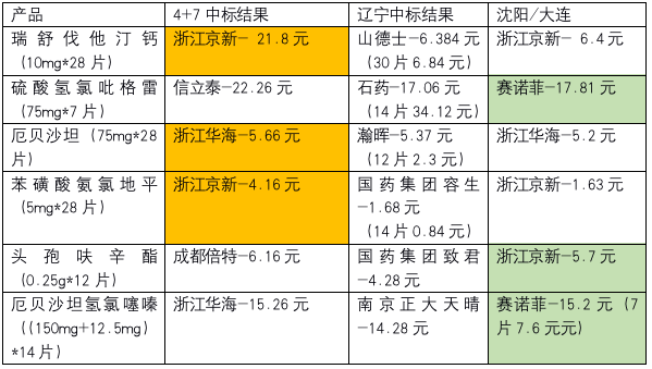 从价格来看,除了厄贝沙坦、氨氯地平这种量大的产品,沈阳/大连的最新结果较联盟扩面时供应的产品价格还要低之外,其余产品价格都较联盟扩面高但低于“4+7“当年的价格。