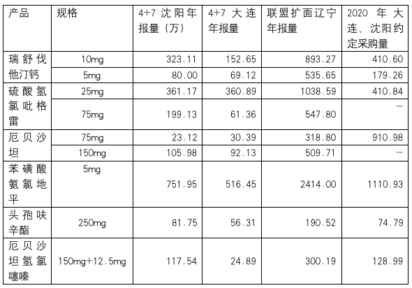 从此前的报量来看,头孢呋辛酯的新报量较低,比“4+7“及联盟扩面中辽宁年报量都偏低,厄贝沙坦的报量却是新高。