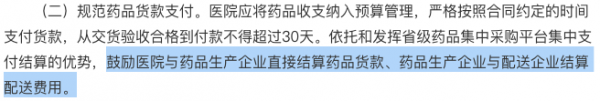 早在2015年2月28日,国务院办公厅发布的《关于完善公立医院药品集中采购工作的指导意见》中,就提到了与药品生产企业与医院直接结算的内容。