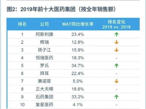 在排名前10的药企中,跨国药企占到6席,且增速显著高于市场平均水平。本土企业中,恒瑞医药、扬子江、正大天晴、石药集团均表现不错,其中,石药集团的增速更是达到33.2%,甚至赶超部分外企的增速。