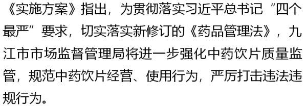 这意味着中药饮片专项整治不仅仅是九江市一个市的事情,而是全国范围内的事情。
