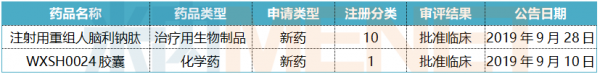 注射用重组人脑利钠肽由山东丹红制药研发,临床拟用适应症为患有休息或轻微活动时呼吸困难的急性失代偿性心力衰竭患者的治疗。目前国内市场上有成都诺迪康生物制药获得该品种的生产批文,该药已成功续约为2019版国家医保目录谈判药品乙类。WXSH0024是山东丹红制药与上海药明康德联合研发的AT2R拮抗剂,临床拟用于神经病理性疼痛的治疗,目前国内外暂无同类产品上市销售。