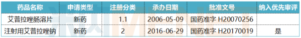表2:丽珠集团的艾普拉唑注册情况