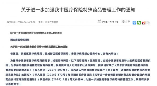 据了解,该《通知》于今年4月1日起正式执行。按照西安要求,特药范围主要包含用于治疗重大疾病、临床必需、疗效确切、价格昂贵、治疗周期较长,用药人群和用药指征明确,适宜药店或门诊供应保障的药品目录内(含国家谈判药品)药品。
