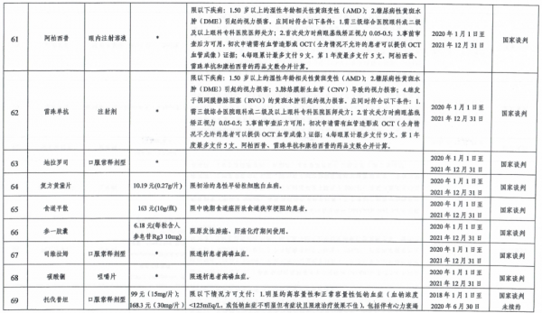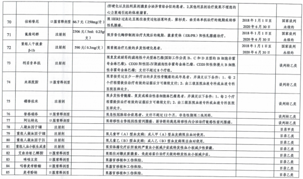 梳理发现,98种特药中纳入了大量2019年底医保谈判成功的药品,包括了恒瑞医药的两款创新药硫培非格司亭注射液、马来酸吡咯替尼片,信达的信迪利单抗等。另外,托伐普坦、拉帕替尼、重组人干扰素β-1b和氟维司群4种药品由于在国家谈判中续约未成功,支付有效期截至2020年6月30日。