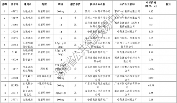 4月15日,湖南省公共资源交易中心发布通知,根据《湖南省2019年公立医疗机构抗菌药物专项集中采购实施方案》(湘医保发【2019】29号),按规定的程序与要求,湖南省抗菌药物专项集中采购工作已经完成,现在将中标结果予以公布,部分药品拟中标价格上进行了纠偏下调,纠偏价格不予公布。