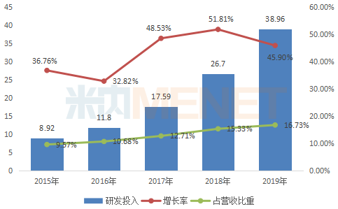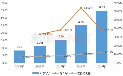 恒瑞医药年报数据显示,近5年来,公司逐年加大研发力度,研发投入年增长率保持在2位数。2016年为分水岭,研发投入首次突破10亿元,研发投入占营收比重突破超过10%,此后一直保持在10%以上。