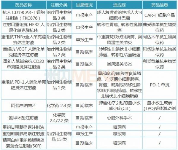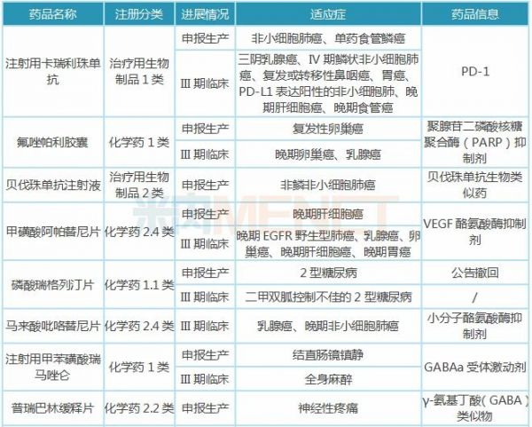 注:只列举临床进展较快(III期及以上)的在研新药,含联用,不含疫苗、原料药、中成药