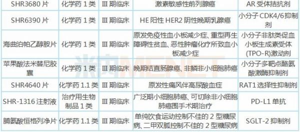 表2:恒瑞医药部分在研新药