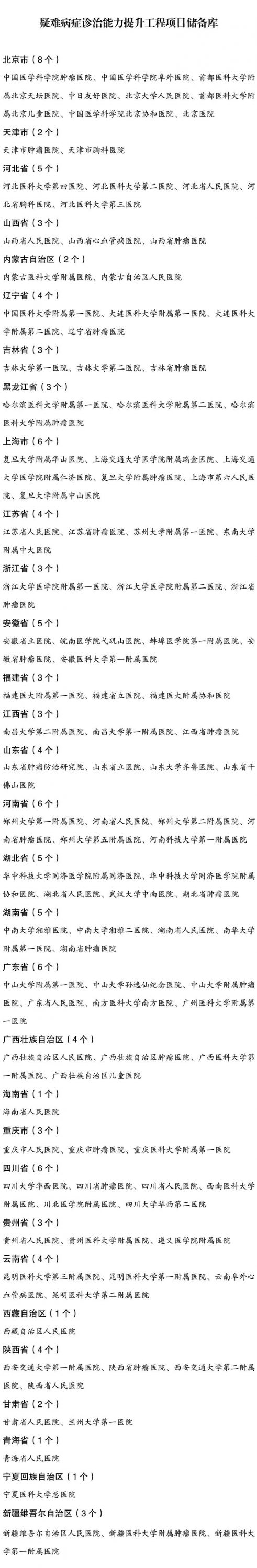 国家加大投入推动医院改革,推进分级诊疗,疑难病症诊治能力提升工程项目储备库名单: