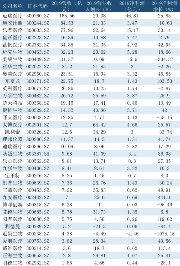 从整体来看,2019年国内医疗器械有七成公司净利润增长。