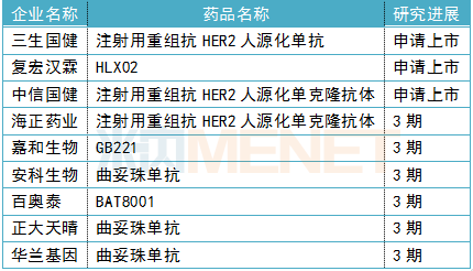 表3:国内HER2靶点药物研发情况(部分)