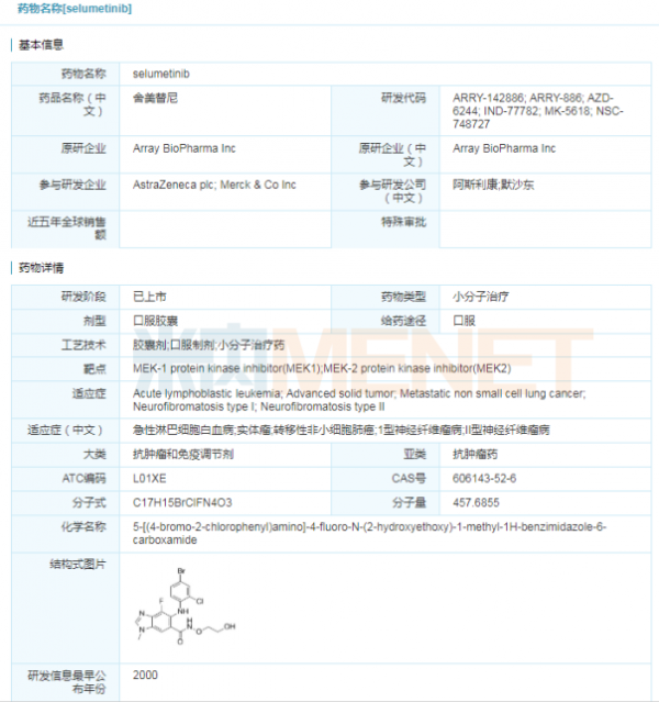 表2:selumetinib胶囊获批临床信息