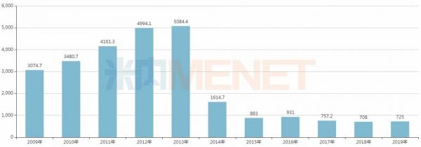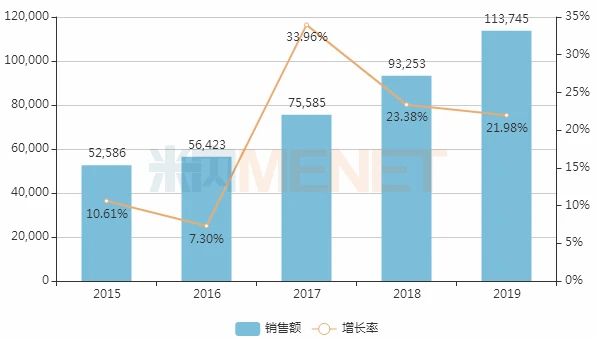图2:2015-2019年中国公立医疗机构终端盐酸度洛西汀销售情况(单位:万元)