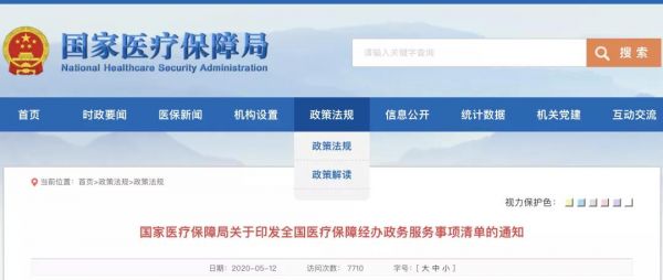 5月12日,国家医保局官网下发《关于印发全国医疗保障经办政务服务事项清单的通知》,对医疗机构回款问题做了规定。
