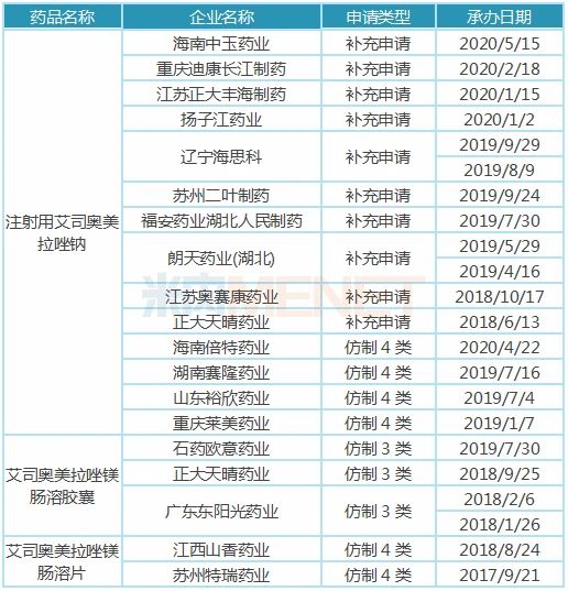 表:艾司奥美拉唑一致性评价申报情况