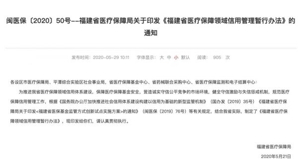 近日,福建省医疗保障局发布《福建省医疗保障领域信用管理暂行办法》(以下简称《办法》)。