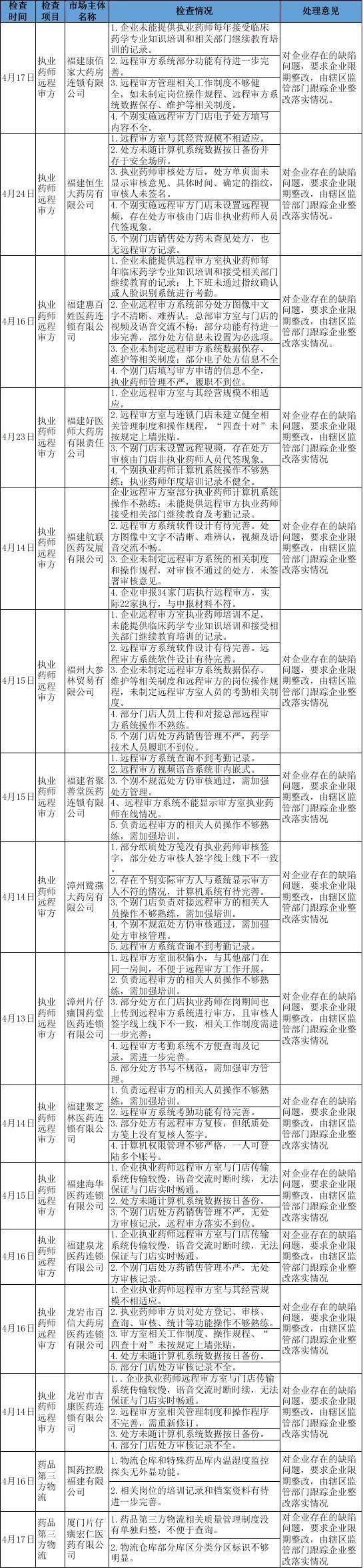 近日,福建省药监局发布《关于福建康佰家大药房连锁有限公司等16家药品零售连锁企业和药品第三方物流企业监督检查结果的公示》。