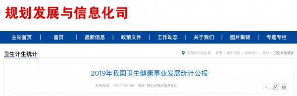 6月6日,国家卫健委发布《2019年我国卫生健康事业发展统计公报》(以下简称《公报》。