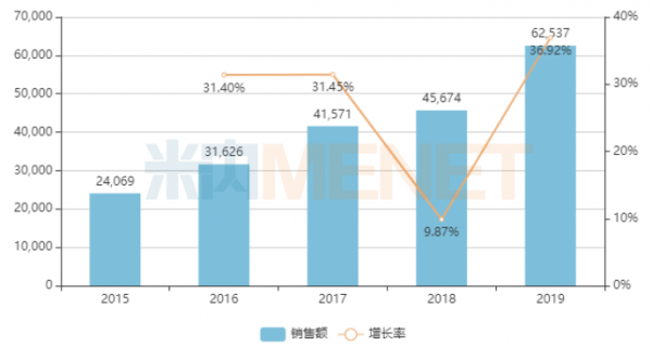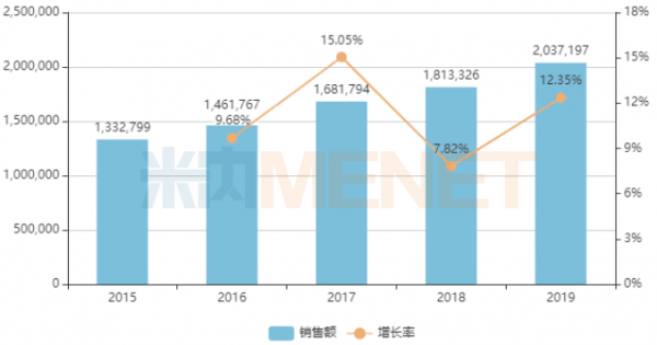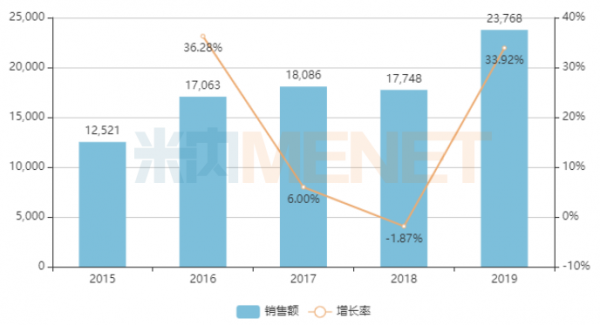 溶液剂市场规模首破200亿,内服TOP20品牌曝光 图1:溶液剂年度销售情况(单位:万元)