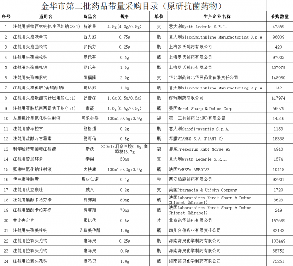 6月8日,浙江省金华市医保局发布了《关于开展金华市第二批药品带量采购的公告》,已形成抗感染原研药品、抗感染非原研药品和中成药等三个竞价组初步目录,共针对274个品规展开带量采购。