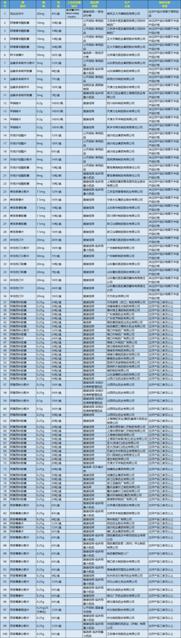 其中,苯磺酸氨氯地平片(5mg)已过评厂家数量达28家;盐酸二甲双胍片(0.25g)已有21家厂家过一致性评价,在负担过评费用的同时,竞争也进一步加剧。