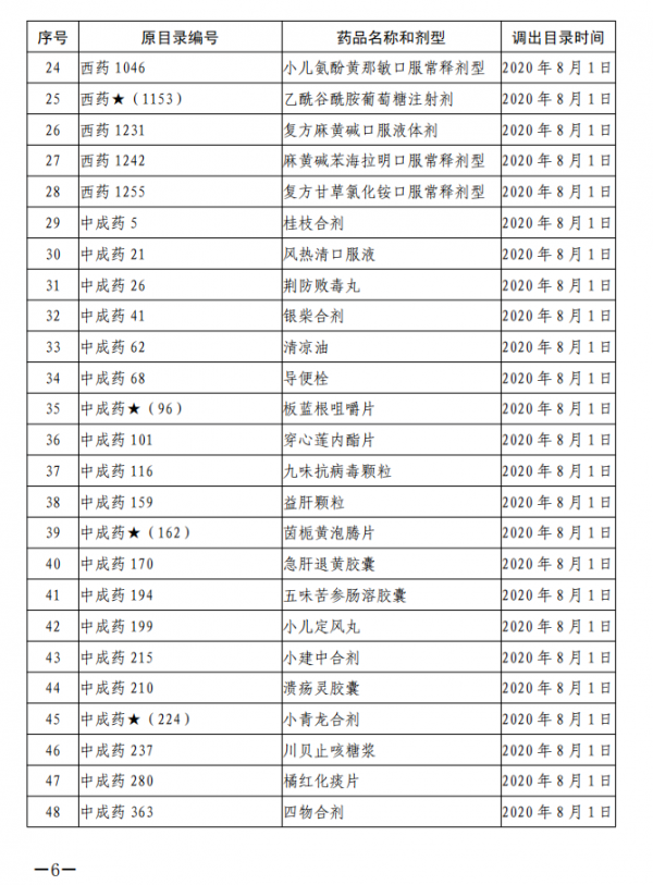 消息显示,纳入国家重点监控范围的转化糖电解质注射剂等6种于2020年7月1日起调出《药品目录》。度米芬含片等94种药品于2020年8月1日起调出《药品目录》。铝镁匹林片(II)等44种药品于2021年8月1日起调出《药品目录》。上述药品调出前,继续按《药品目录》有关规定支付。