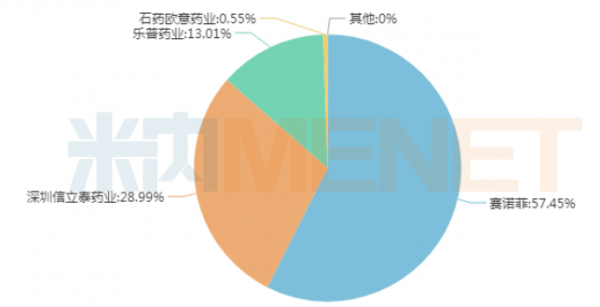 目前国内市场已有6家企业拥有硫酸氢氯吡格雷片生产批文,分别为赛诺菲、信立泰、乐普药业、石药欧意、阿特维斯、印度瑞迪博士实验室。从企业竞争格局来看,2019年中国公立医疗机构终端氯吡格雷市场领军企业仍为赛诺菲,占据57.45%的市场份额,信立泰占比28.99%。