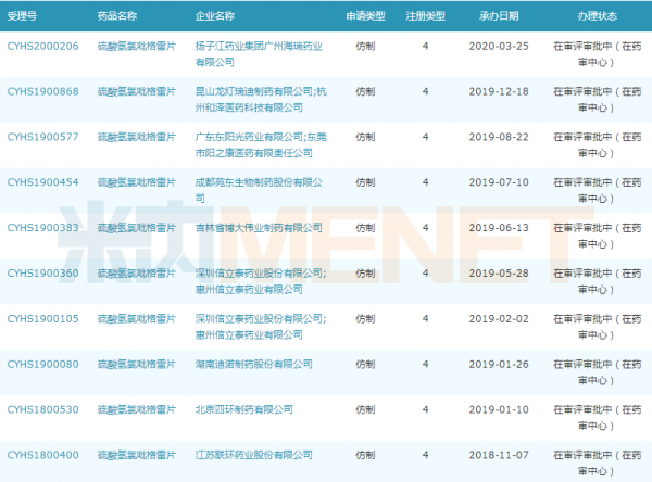 米内网数据显示,扬子江药业集团、东阳光药、苑东生物……9家企业按仿制4类提交的硫酸氢氯吡格雷片上市申请在审评中。
