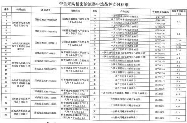 《管理通知》明确要求对精密输液器实行医保支付标准管理。市参保住院患者使用驻并医疗机构医用耗材带量采购的精密输液器中选品种,将中标价作为医保支付标准。