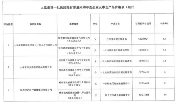 现将驻并医疗机构医用耗材(第一批)集中带量采购精密(避光)输液器带量采购结果共享其他公立医疗机构和民营医疗机构,各医疗机构自愿与中选企业签订采购协议并在省药械平台上进行采购。