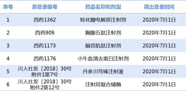 据了解,按照国家医保局明确规定的调出时限,四川决定将纳入国家重点监控范围的转化糖电解质注射剂等6种药品于2020年7月1日起调出。