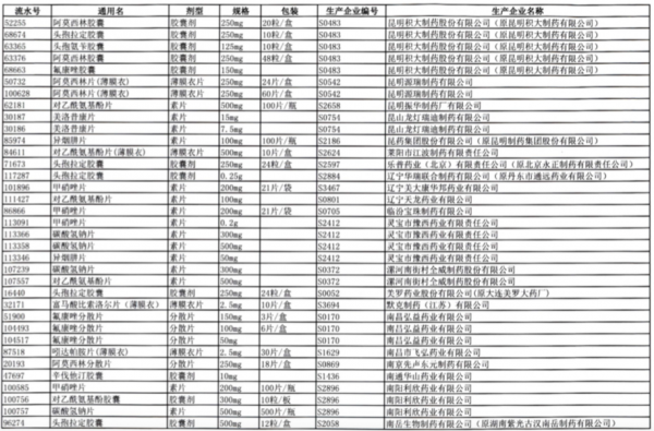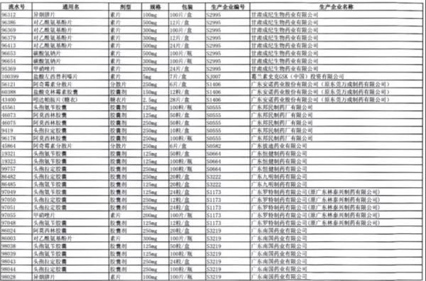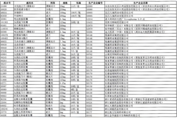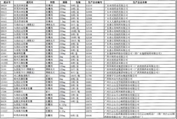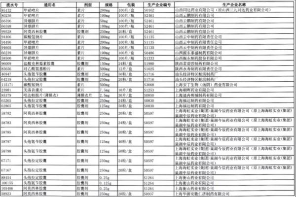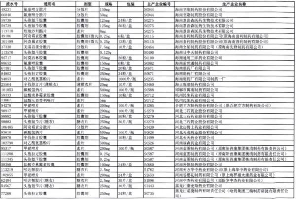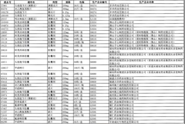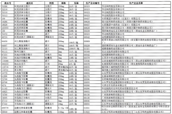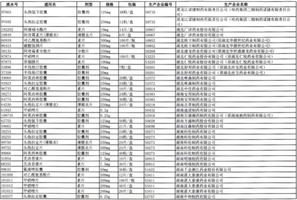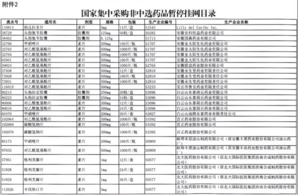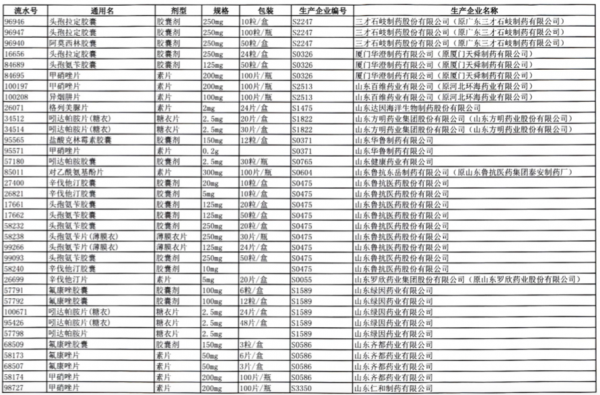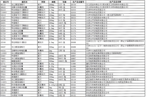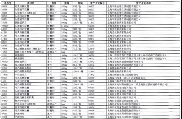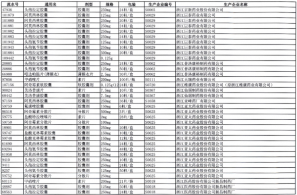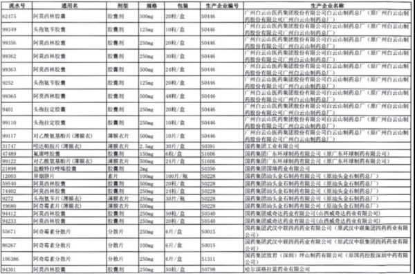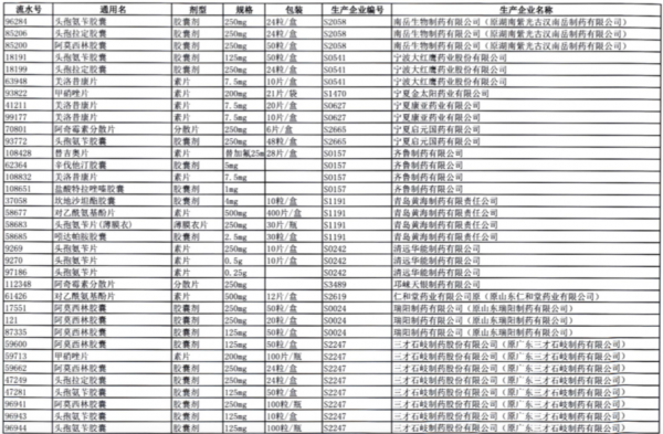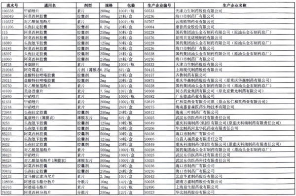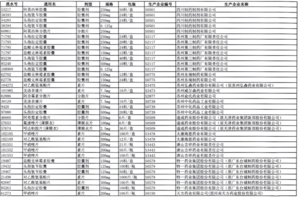 值得注意的是阿莫西林胶囊、头孢氨苄胶囊、对乙酰氨基酚片、头孢拉定胶囊等批文数较多的品种,仅同一通用名下就有大量不同品规的药品被暂停采购,涉及众多知名药企。