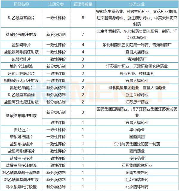 表5:目前在审的止痛药一致性评价补充申请及新分类仿制上市申请的情况