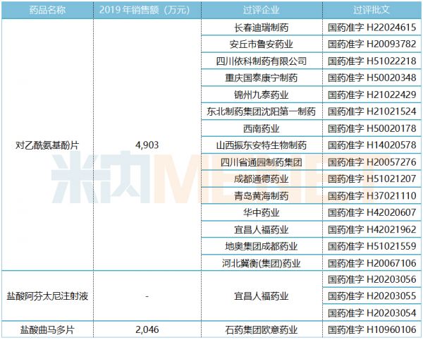米内网数据显示,截至2020年7月1日,通过及视同通过一致评价的止痛药涉及3个产品,其中对乙酰氨基酚片过评企业达15家,人福的盐酸阿芬/太/尼注射液为新分类获批视同过评,盐酸曲马多片目前仅有石药欧意过评。