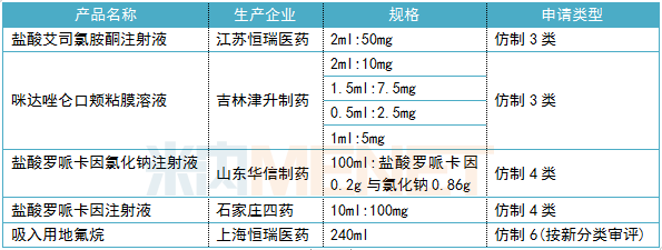 正在审评一致性评价补充申请和按新注册分类申报上市的麻醉剂
