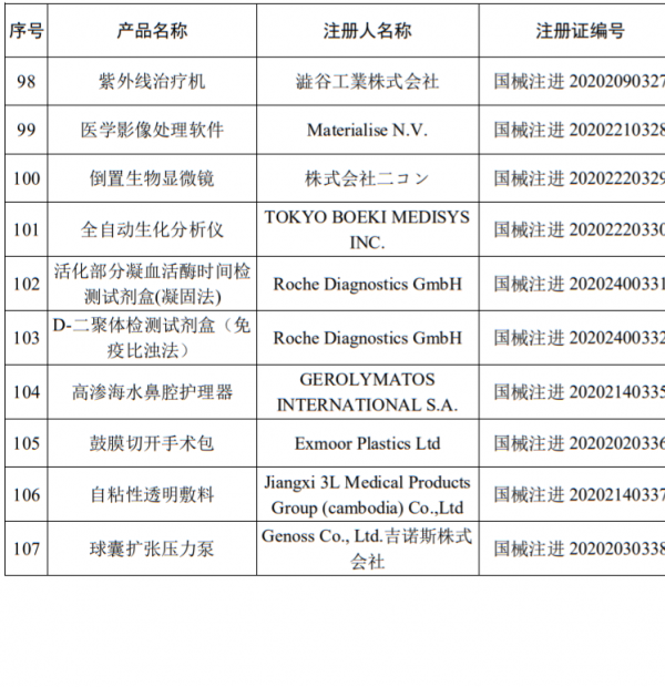 107个器械获批名单