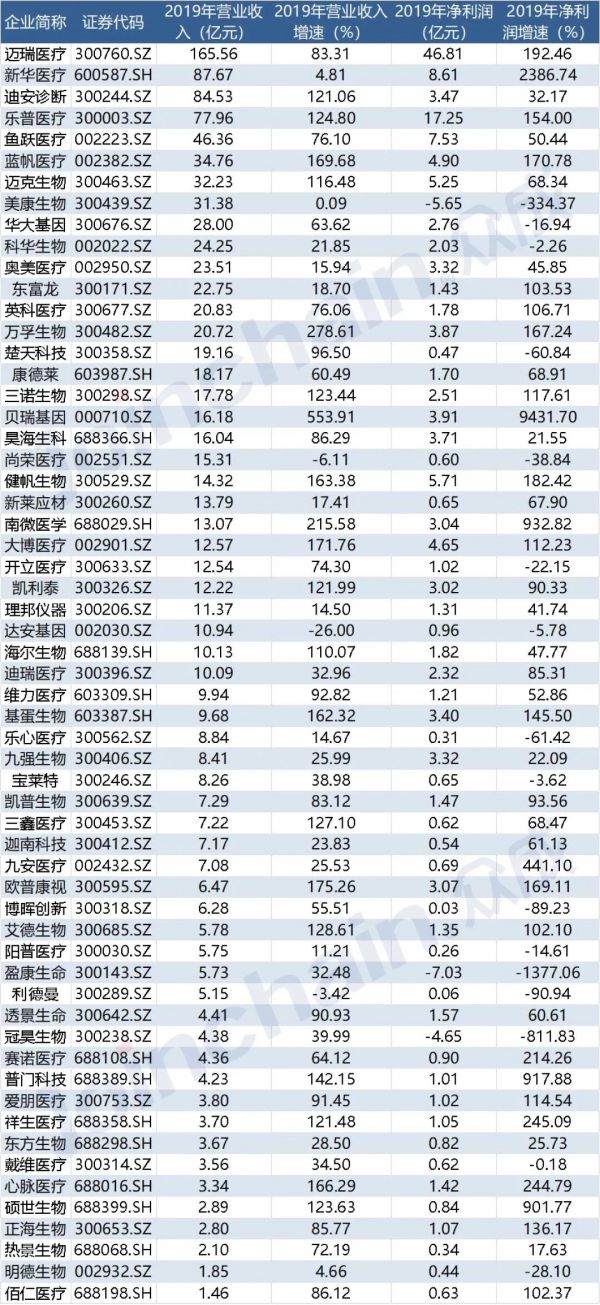 深圳市新产业生物医学工程股份有限公司首次出现在榜单,排第7名;
