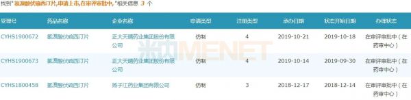 在此之前,扬子江和正大天晴药业集团分别以仿制3类、4类提交上市申请,在审评审批中(在药审中心)。