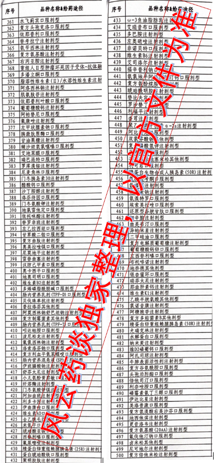上述名单上的500个药品主要为采购金额前80%的品种。名单中除了大量化学药,还涉及多个生物药,包括重组人Ⅱ型肿瘤坏死因子受体-抗体融合蛋白、利妥昔单抗、曲妥珠单抗、贝伐珠单抗等,以及多个胰岛素品种。