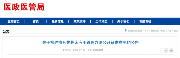 7月29日,国家卫健委发布《关于抗肿瘤药物临床应用管理办法公开征求意见的公告》(以下简称《办法》),对抗肿瘤药物临床使用提出明确要求。