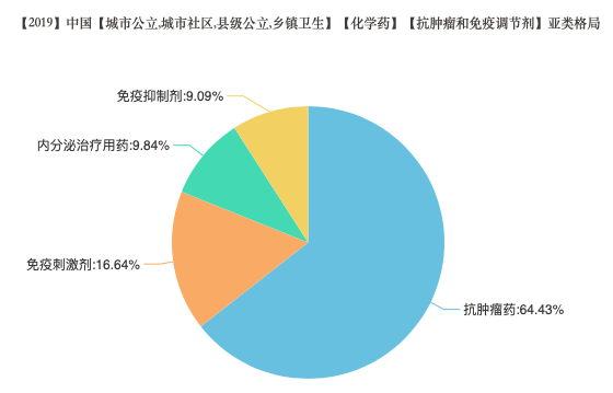 从细分类别来看,抗肿瘤药的市场占比最高,高达64.43%,其次是免疫刺激剂16.64%,内分泌治疗用药9.84%,免疫抑制剂9.09%。