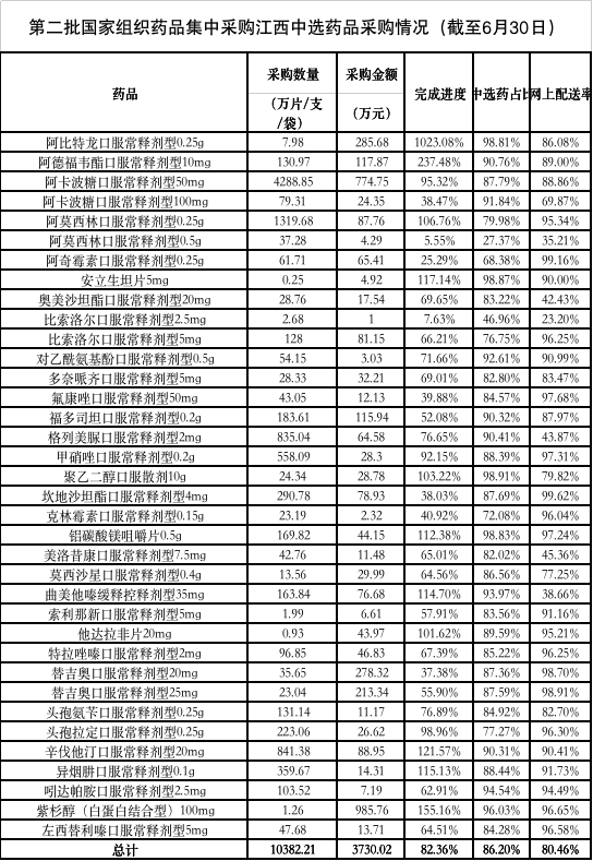 近日,江西发布《江西省落实国家组织药品集中采购和使用工作情况通报》,公布了第一批国采中选药品截至6月30日的执行情况,据悉江西自去年12月20日开始在全省执行中选结果。