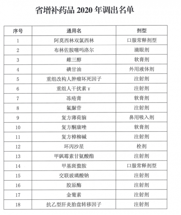 本次调出品种自2020年9月1日起执行,届时所调出药品的费用,省基本医疗保险、工伤保险和生育保险和生育保险基金不再予以支付。