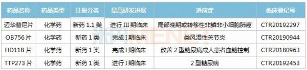 TTP273片为华东医药引进的口服GLP-1创新药,2型糖尿病适应症已开展I期临床;HD118片为公司技术转让来的DPP-4抑制剂,改善2型糖尿病成人患者血糖控制适应症已完成I期临床;OB756片类风湿性关节炎适应症已完成I期临床,骨髓增殖性疾病适应症已获批临床。