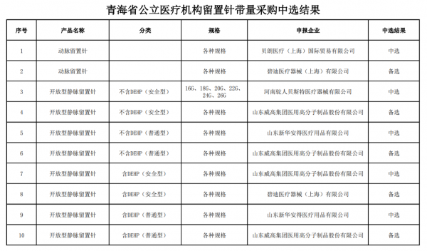 8月18日,根据青海日报消息,青海省医疗保障局组织全省公立医疗机构医用耗材集中采购联盟,完成留置针和输液器集中带量采购工作。