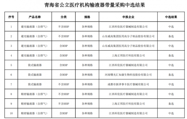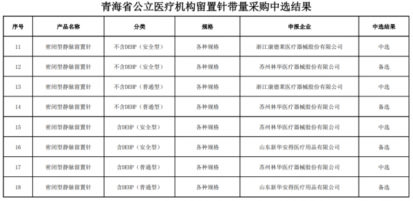 7月17日和8月13日,青海省药品和医用耗材集中采购网分别发布留置针和输液器的带量采购中选企业结果(详见文末)。